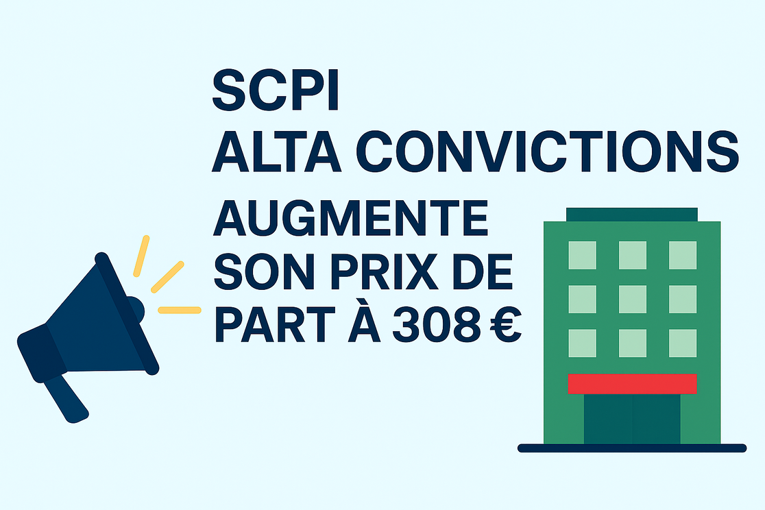 La SCPI Alta Convictions a annoncé la revalorisation de son prix de part, passant de 305 € à 308 € au 1ᵉʳ décembre 2025, soit une hausse d’environ +1 %.