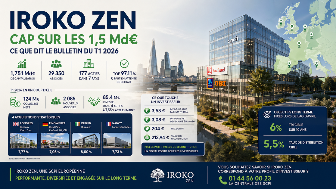 À noter : Iroko Zen vient de fixer ses objectifs officiels à long terme lors de son AG d'avril — un TRI cible de 6 % sur 10 ans et un taux de distribution cible de 5,5 %.